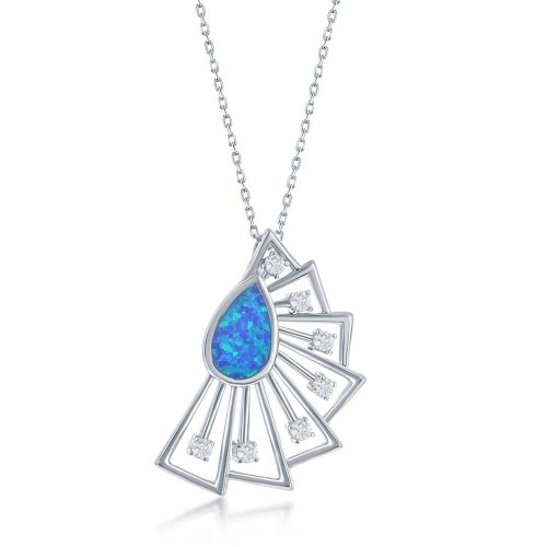 Sterling Sivler Triangle Shaped Blue Inlay Opal Earrings