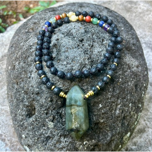 Experience the gentle power of Strawberry Quartz with our exquisite Mala bead necklace. This stunning 28-inch necklace features a captivating 2-inch Strawberry Quartz centerpiece, radiating love, balance, and positive energy.