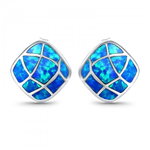 Stud Earring Square Shape Lab Created Blue Opal 925 Sterling Silver (13mm)
