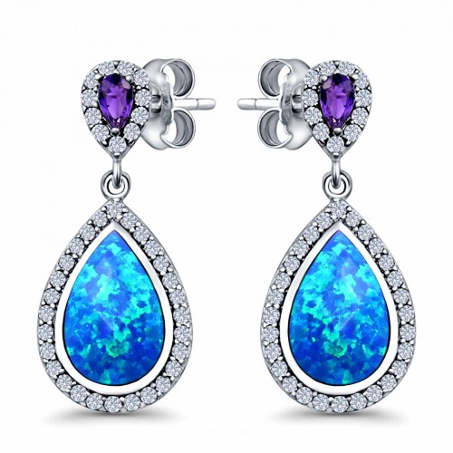 Be the first to review “Stud Earrings Lab Created Blue Opal Simulated Amethyst CZ 925 Sterling Silver (16mm)” Cancel reply