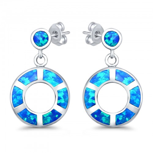 Stud Round Earrings Lab Created Blue Opal 925 Sterling Silver (8mm)