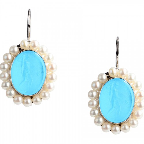 Tagliamonte 18K Gold-Plated Lapis, Chalcedony, and Lava Pierced Drop Earrings