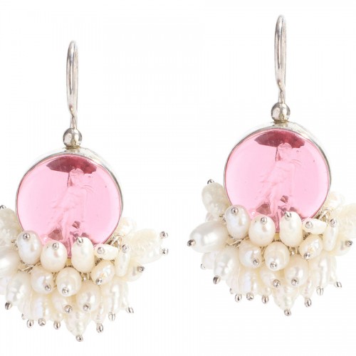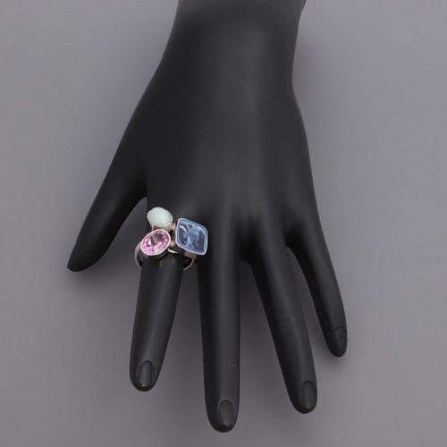 Tagliamonte’s Sterling Silver Multistone Venetian Glass Cameo Ring is an unusual piece combining faceted pink topaz, jade, and a blue Pegasus cameo! The three individual gems are bezel set in sterling silver and raised on an adjustable band. New and never worn, it comes with a box, pouch, and cloth. When you can’t make up your mind which ring to wear, this three-in-one jewel fills the bill!
