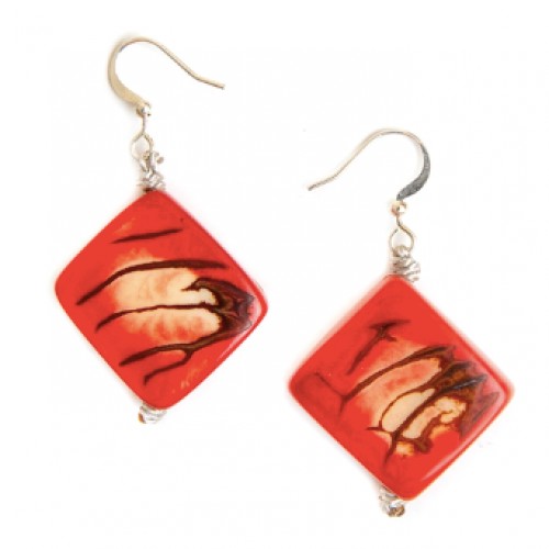 Colorful and sustainable dangle earrings handmade with tagua pieces with natural leftover grain.