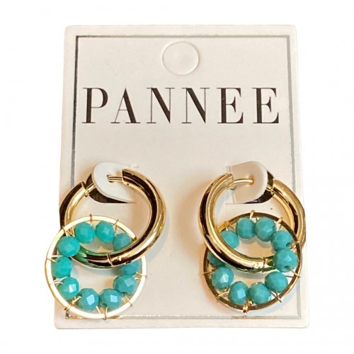 Teal Beaded Circular Shaped Earrings in Gold Tone.