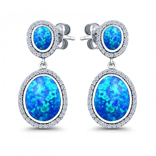Teardrop Drop Dangle Earrings Pear Lab Created Blue Opal 925 Sterling Silver (26mm)