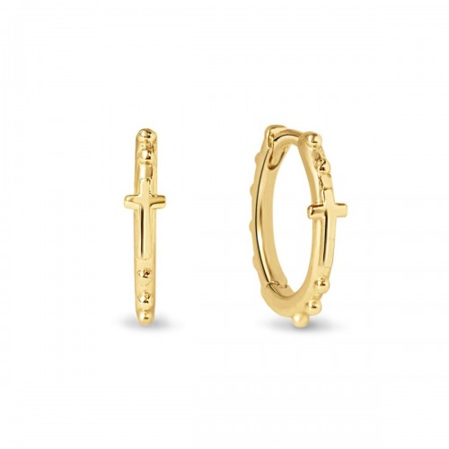 Silver cross huggies earrings with tiny pavé crystals with a snug fit. Ideal for small earlobes or as a dainty secondary piercing accent.