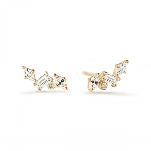 These TINY screw back stud earrings feature two crystals set in gold vermeil. Not for first piercing.