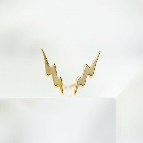 Dainty gold lightning bolt stud earrings perfect for second or third piercings. A sleek minimalist accent for your everyday ear stack.