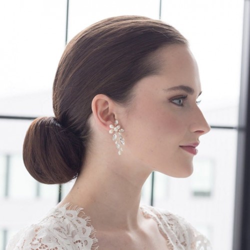 These elegant bridal earrings are sure to make a statement on your special day! Featuring handmade porcelain clay flowers accented with freshwater pearls and dangling from French hooks. Earrings measure 2 1/2″ and are perfect for the bride, weddings, or any special occasion!