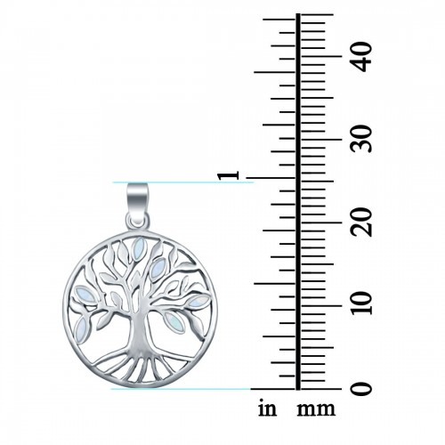 Tree Roots Round Lab Created White Opal 925 Sterling Silver Charm Pendant