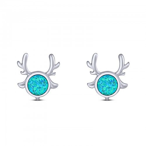 Unicorn Stud Earring Created Blue Opal Solid 925 Sterling Silver (9.8mm)