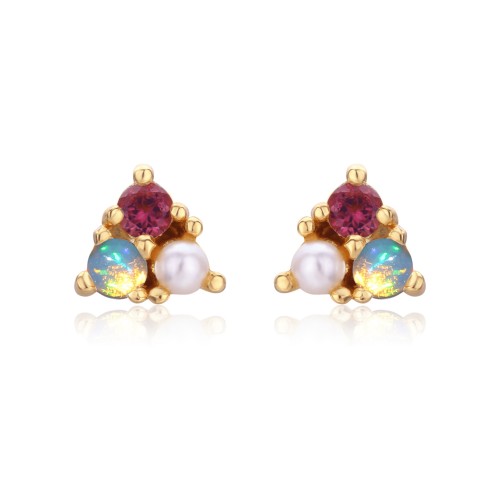 Verdant Moss Agate Stud Earrings Gold Vermeil