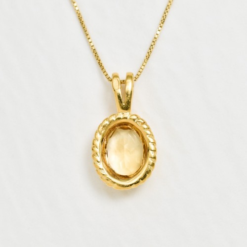 Vintage Citrine Pendant set with a Natural Citrine in a top grade, diamond cut & natural yellow color, at 10x8mm diameter (3 Cts) from Brazil.