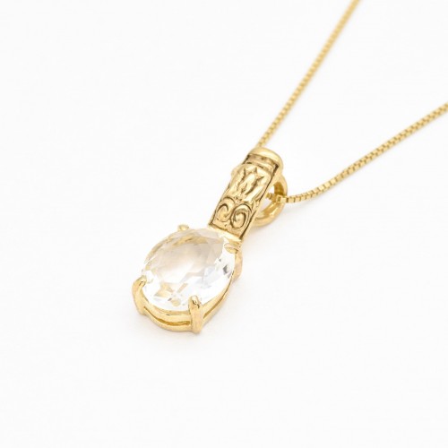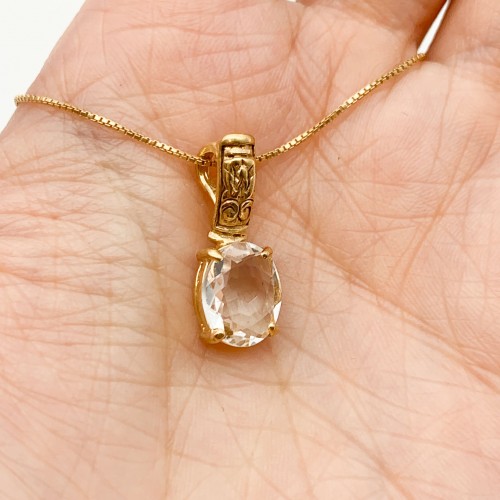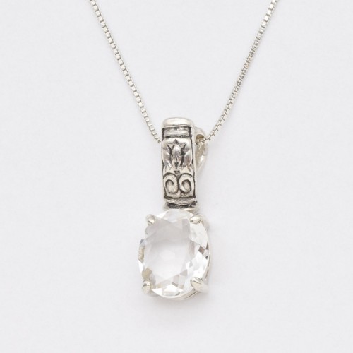White Topaz Pendant set with a Natural White Topaz in a perfect diamond cut & flawless clarity at 10x8mm (3 Carats) from Brazil.