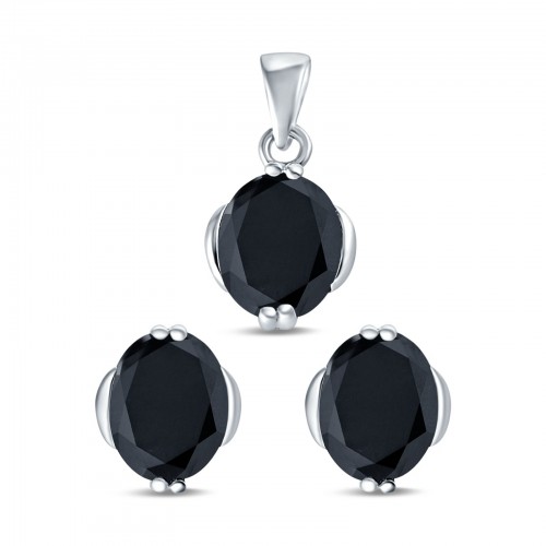 Art Deco Oval Wedding Bridal Solitaire Stud Earrings Simulated Black CZ 925 Sterling Silver-7mmx5mm