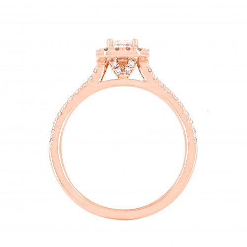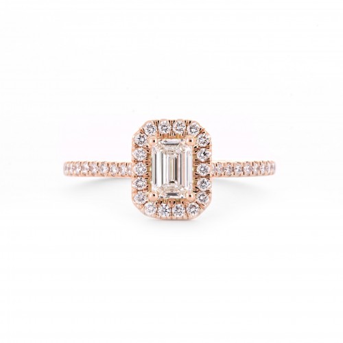 0.80ctw Emerald Diamond Engagement Ring, Halo, Pavê Band – 14K Rose Gold
