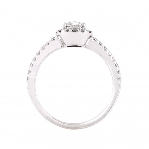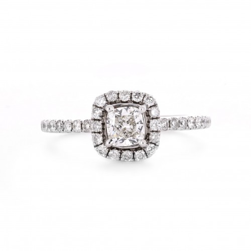 0.82ctw Cushion Diamond Engagement Ring, Halo, Pavê Band – 14K White Gold