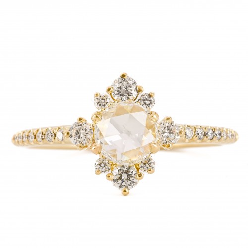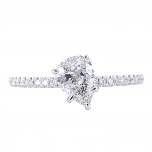 1.02CTW Slanted Pear Diamond Engagement Ring – Pavé Band – 14K White Gold