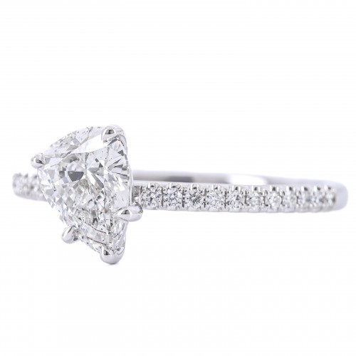 1.02CTW Slanted Pear Diamond Engagement Ring – Pavé Band – 14K White Gold