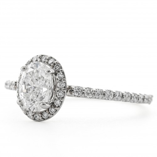 1.03CTW Oval Diamond Engagement Ring – Halo – 14K White Gold